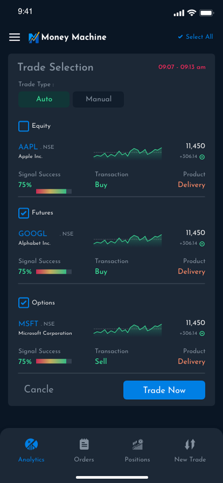 Every day after logging in, all you have to do is to click on "Trade Now" to opt for M2 Money Machine’s unique auto trading.